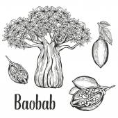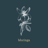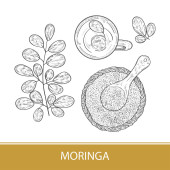 Moringa liści i nasion. Szkic wektor ilustracja grawerowane. Białe tło.