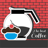 Białe filiżanka kawy z steam, ze Najlepsza kawiarnia napis i espresso, latte, glasse, espresso macchiato i cappuccino, kontury, nad srebrny tło, obraz cyfrowy wektor