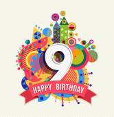 Kolorowy szczęśliwy urodziny numer 9 linii płaskiej konstrukcji