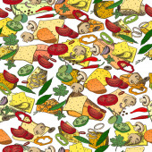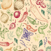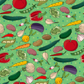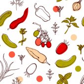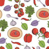 Bezszwowy wzór z różnych warzyw i ziół. Niekończące się tekstury dla projektu, ogłoszenia, tkaniny, karty, plakaty, restauracja i kawiarnia menu.