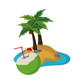 Projekt plaża. Dłoń drzewo ikona. Ilustracja kolorowy