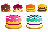 Wektor zestaw ikon tort, urodziny żywności, słodki deser ilustracja na białym tle.
