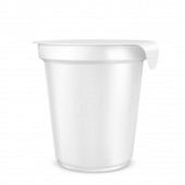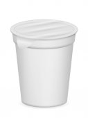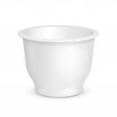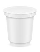 Pojemnik na wiadro plastik biały żywność na deser, jogurty, lody, śmietana lub przekąskę. Ilustracja na białym tle. Makiety gotowy szablon dla Twojego projektu. Opakowania produktu