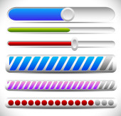 Zestaw wektorowy kolorowego papieru zwojowego z czerwoną wstążką, EPS 10.