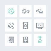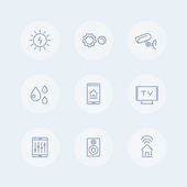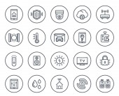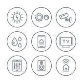 Inteligentny dom technologii linii systemu ikon w kręgach, system automatyki domowej, inteligentny piktogram domu, wektor ilustracji