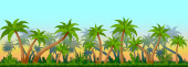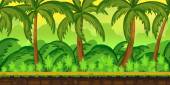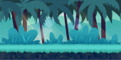 Dżungli gry tło dla aplikacji 2d. Wektor wzór. Taflowy poziomo. Rozmiar 1024 x 512.