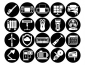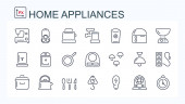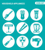 Ustaw nowoczesne ikony wektorowe. Urządzenia AGD suszarki do włosów, lokówki, golarki elektryczne, maszyny do golenia, grzejnik, blender, procesor żywności, wentylator. Czarne znaki białe tło projekt na białym tle