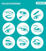 Zestaw nowoczesnych ikon wektorowych. Pielęgnacja rzęs kosmetyki, oczy, brwi, rzęsy, ołówek, eyeliner, tusz do rzęs. Czarne znaki na białym tle. Zaprojektuj pojedyncze symbole i sylwetki