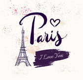 Wieża Eiffla i serca. Paryż ręcznie rysowane list wektor ilustracja projekt plakatu