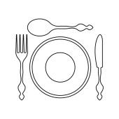 Płyta, nóż, łyżka i widelec