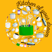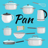 Przybory kuchenne ikony wektor zestaw. Kreskówka kuchnia naczynie kolekcji dla gospodarstwa domowego sztućce kuchnia, wyposażenie kuchni