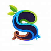 Numer dziewięć logo z zielonych liści i wody, fale.
