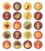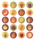 Owoce i warzywa, organiczne potrawy wegetariańskie, kolekcja ikon zdrowej diety. Płaski wektor koło ikony zestaw z długim cieniem. Żywność i napoje.