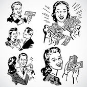 wersję biało-czarny graficzny portret kobiety z wads środków pieniężnych