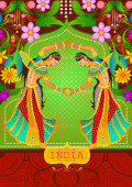 Kwiatowe tło z Kachhi Ghodi tańca, sztuki ludowej, Radżastan Wyświetlono Incredible India