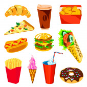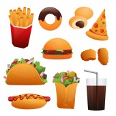 Zdjęcie "Fast Food kolorowe obiekty zestaw" może być wykorzystywane do celów osobistych i komercyjnych zgodnie z warunkami zakupionej licencji Royalty-free. Obraz jest dostępny do pobrania w jakości wysokiej rozdzielczości do 5760x3840.