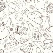 Wektor bezszwowy wzór z ręcznie rysowane na białym tle torebki dla kobiet w kolorze białym