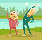 Osoby starsze i gimnastyka. Ilustracja kreskówka wektor