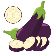 Wektor świeży bakłażan. Pokrojone w plastry, zupełnie, pół bakłażan.
