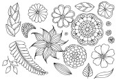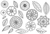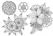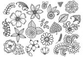 Zestaw elementów kwiatowy doodle dla projektu lub kolorowania
