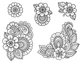 Zestaw elementów kwiatowy doodle dla projektu lub kolorowania