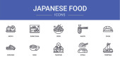 Zestaw w stylu cienka linia ikon Japoński żywności