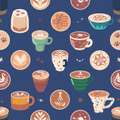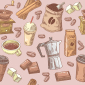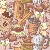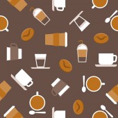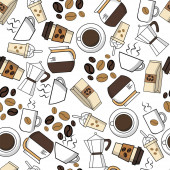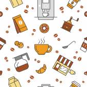 Coffee Time Line sztuki szczupły wektor wzór tła z filiżanek i fasoli