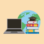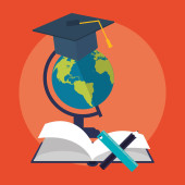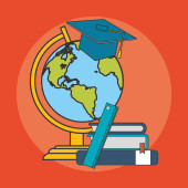 Edukacja i ziemi glob z academia związane z obrazu ikony