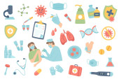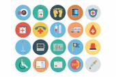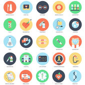 Mieszkanie pojęciowy ikony pack służby zdrowia i sprzętu medycznego. Pojęcia dotyczące witryny sieci Web i projektowania graficznego. Mobile i nośników wydruku. Na białym tle.