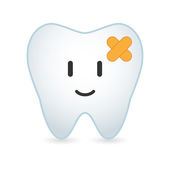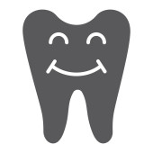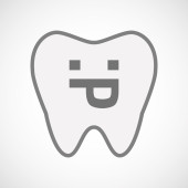 Linia na białym tle sztuki ząb ikona z twarzą tekst uśmiech