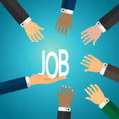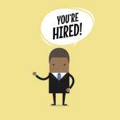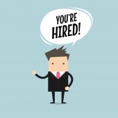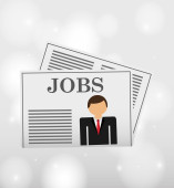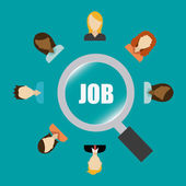 Biznesmen, patrząc przez szkło powiększające z zatrudnienia znak