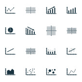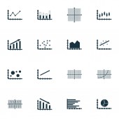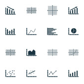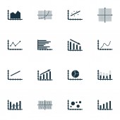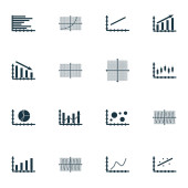 Zestaw wykresów, diagramów i statystyki ikony. Kolekcja Symbol jakości premium. Ikony mogą służyć dla sieci Web, aplikacji i projektowania interfejsu użytkownika. Ilustracja wektorowa, Eps10.