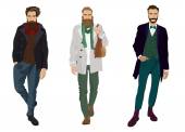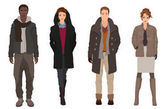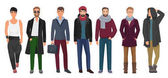 Przystojny młody faceci z piękny dziewcząt kobieta modele w jesień wiosna casual nowoczesny moda odzież na białym tle. Ludzie pary.
