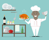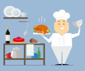 Gotowania. Pokrojone warzywa upadek na patelni. Ilustracja wektorowa mieszkania