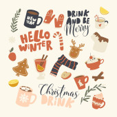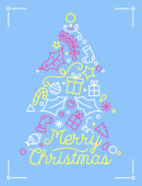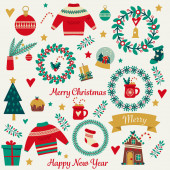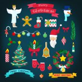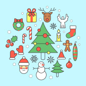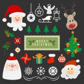 Wesołych Świąt Bożego Narodzenia i szczęśliwego nowego roku party elementy dekoracyjne z Mikołajem, choinki i prezenty. Ilustracja wektorowa