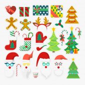 Zdjęcie "Wesołych Świąt Bożego Narodzenia i szczęśliwego nowego roku party elementy dekoracyjne z Mikołajem, choinki i prezenty. Ilustracja wektorowa" może być wykorzystywane do celów osobistych i komercyjnych zgodnie z warunkami zakupionej licencji Royalty-free. Obraz jest dostępny do pobrania w jakości wysokiej rozdzielczości do 5760x3840.
