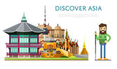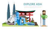 Wspaniały plakat azjatycki ze słynnymi atrakcjami.