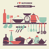 Zestaw ikon, wyposażony w różne przybory kuchenne i gotowanie obiekty powiązane.