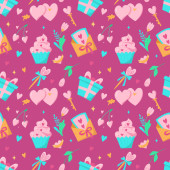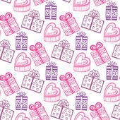Bezszwowe tło Boże Narodzenie ilustracja z ładny prezent Boże Narodzenie, ozdoby świąteczne i drzewa na różowym tle nadaje tapeta, pocztówka i na kartce papieru