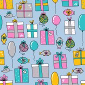 Zdjęcie "Bezszwowe tło Boże Narodzenie ilustracja z ładny prezent Boże Narodzenie, ozdoby świąteczne i drzewa na niebieskim tle nadaje tapeta, pocztówka i na kartce papieru" może być wykorzystywane do celów osobistych i komercyjnych zgodnie z warunkami zakupionej licencji Royalty-free. Obraz jest dostępny do pobrania w jakości wysokiej rozdzielczości do 5760x3840.