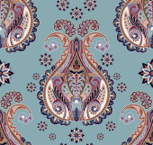 Zdjęcie "Bezszwowe tło Paisley, kwiatowy wzór. Indyjski ornament" może być wykorzystywane do celów osobistych i komercyjnych zgodnie z warunkami zakupionej licencji Royalty-free. Obraz jest dostępny do pobrania w jakości wysokiej rozdzielczości do 5760x3840.