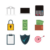 Finansową bezpieczeństwa banku oszczędności ikonę konta, oszustwa zapobiegania pieniędzy transakcji