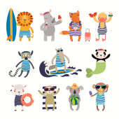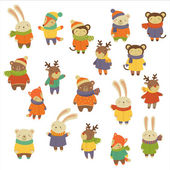 Ubrany w szaty ludzi zestaw ilustracje zwierząt arktycznych