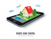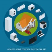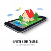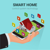 Płaska konstrukcja styl nowoczesny wektor ilustracja koncepcja systemu inteligentnego sterowania mieszkaniem z scentralizowanej kontroli oświetlenia, ogrzewania, wentylacji i klimatyzacji, zabezpieczeń i wideo