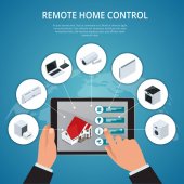 Zdjęcie "Płaska konstrukcja styl nowoczesny wektor ilustracja koncepcja systemu inteligentnego sterowania mieszkaniem z scentralizowanej kontroli oświetlenia, ogrzewania, wentylacji i klimatyzacji, zabezpieczeń i wideo" może być wykorzystywane do celów osobistych i komercyjnych zgodnie z warunkami zakupionej licencji Royalty-free. Obraz jest dostępny do pobrania w jakości wysokiej rozdzielczości do 5760x3840.