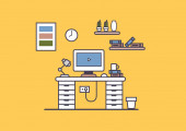 Pracownik biurowy za pulpicie