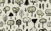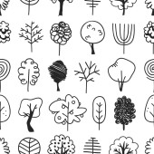 Tekstura z ręcznie rysowane drzew. Niekończące się ręcznie rysowane wzór jesień. Szablon dla projektowania tkaniny, tkaniny, tła, opakowania, papier pakowy. Ilustracja wektorowa