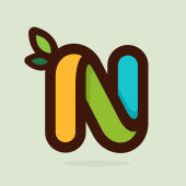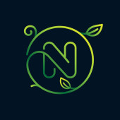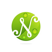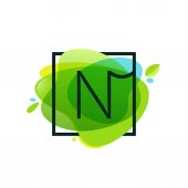 Logo literę N w ramie kwadratowych o zielony splash akwarela backgro