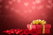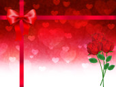 Karta z czerwonych róż, łuk, serca i kopiować miejsca