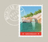 Ilustracja wektorowa Montana, snowy góry, rzeki i lasu.
